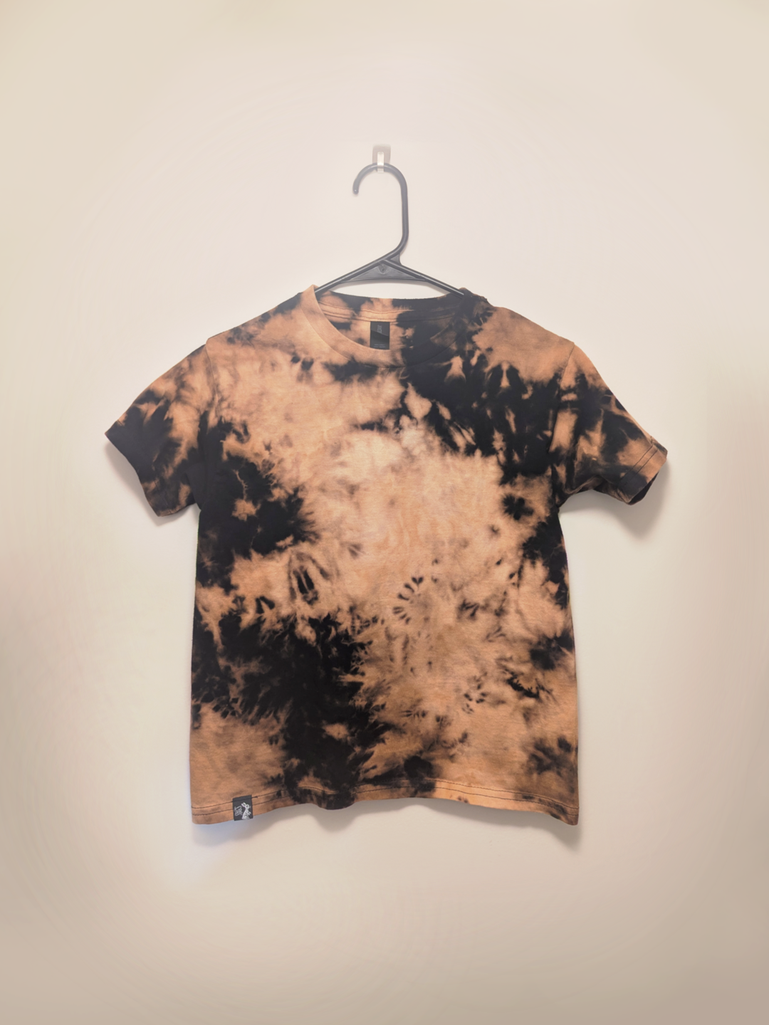 Hand-bleached kids tee shirt — 100% cotton, unisex relaxed fit, unique grunge/organic patterns. Perfect for toddlers through older kids who love alternative, handmade style.